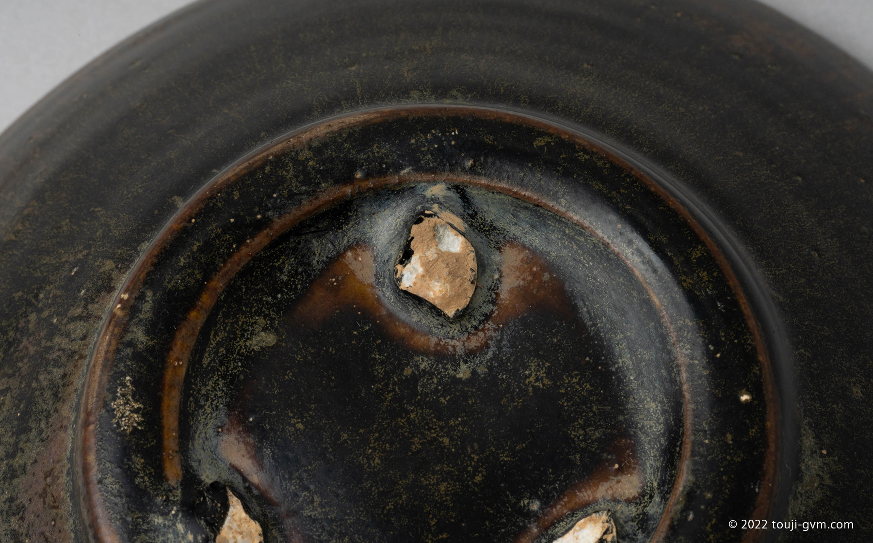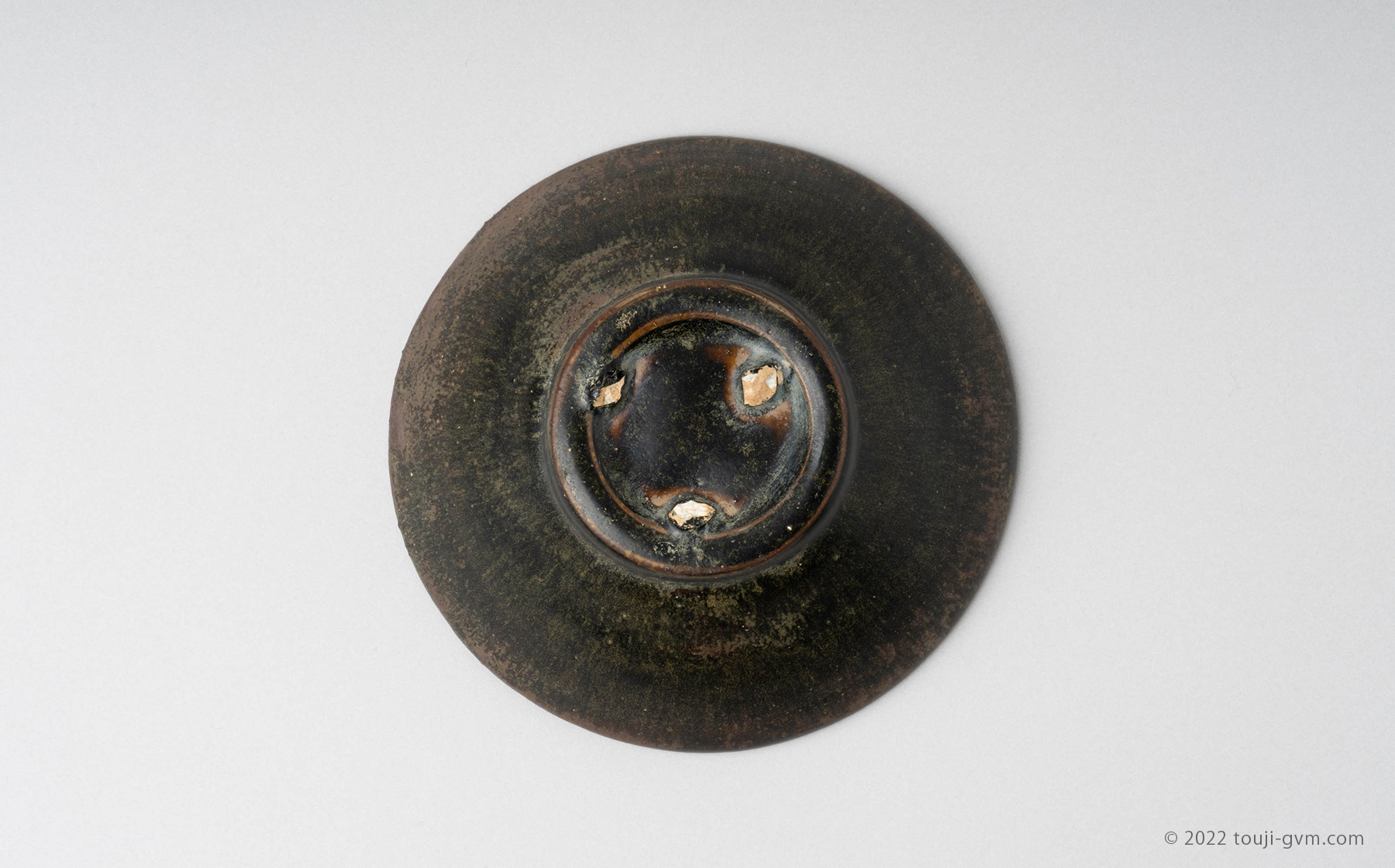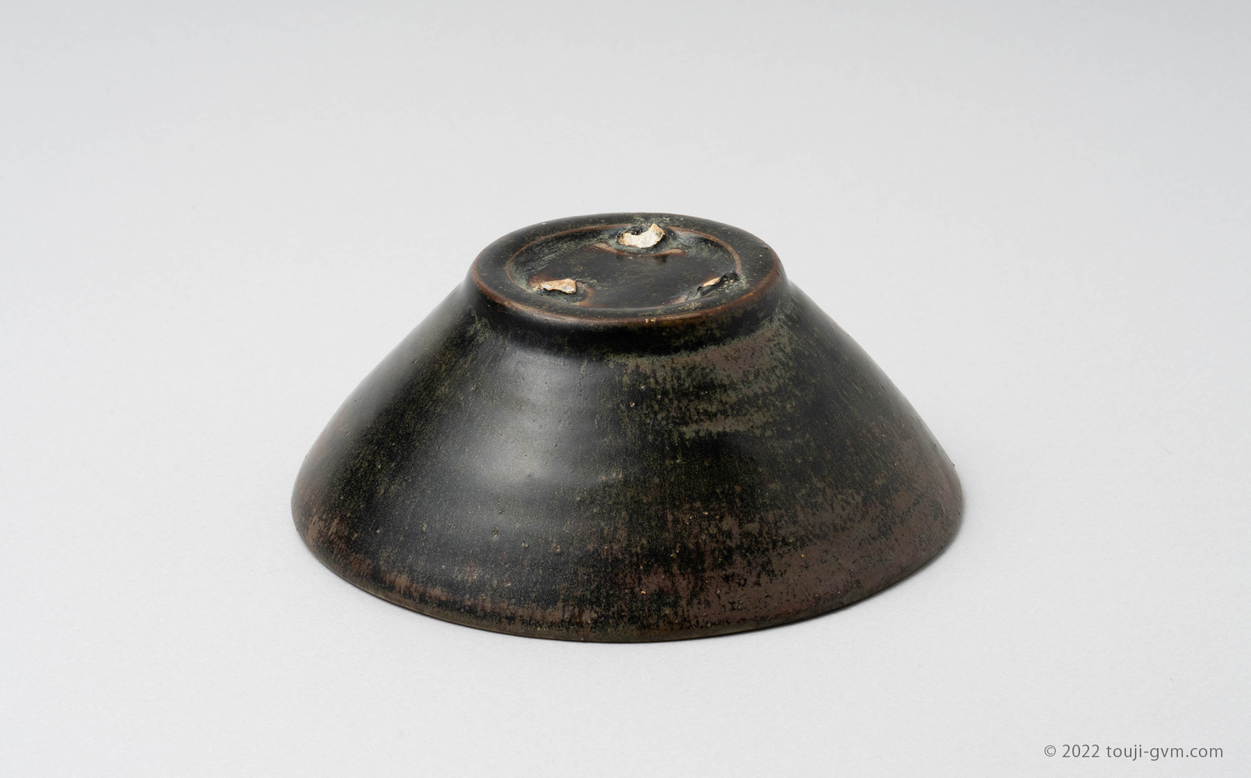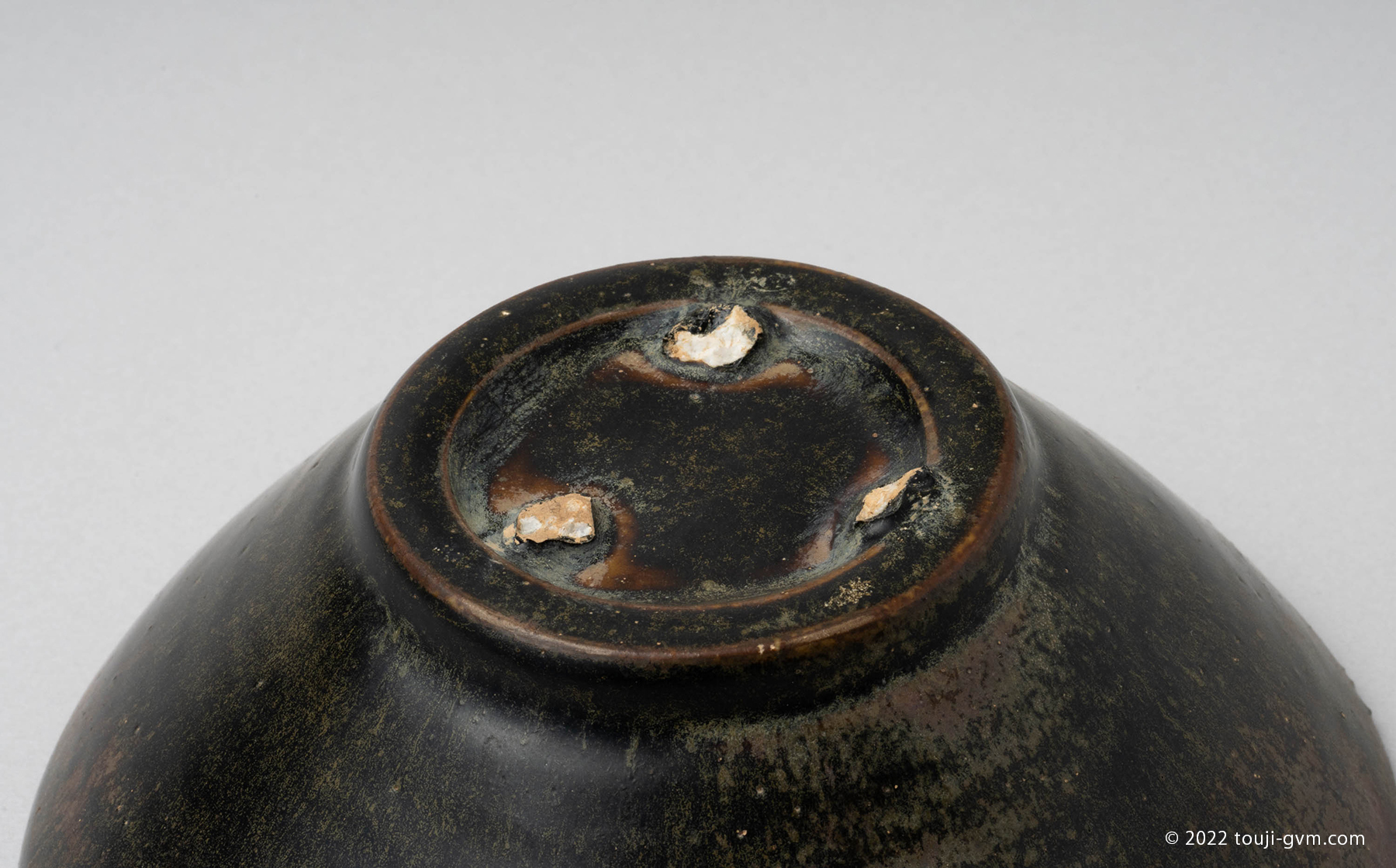 太く作られた高台には大きな石目跡が3つ残り、高台内までの総釉となっています。